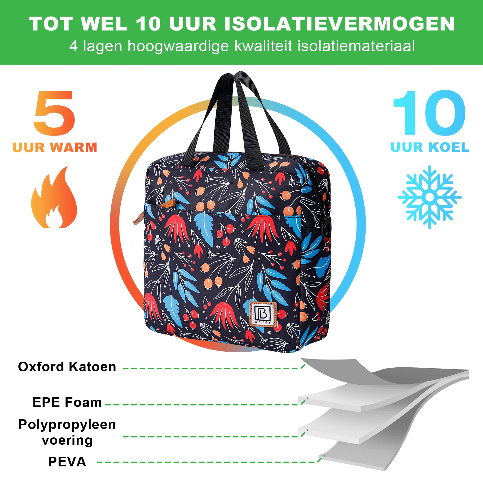 1. Met de Brisby 4 Laags Geïsoleerde Koeltas – Lunchtas 7 liter blijft je eten wel 10 uur lekker koel!